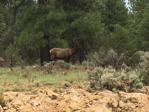Onderweg kwamen we nog enkele ‘elk’ tegen. En sommigen staken zelfs de baan over.