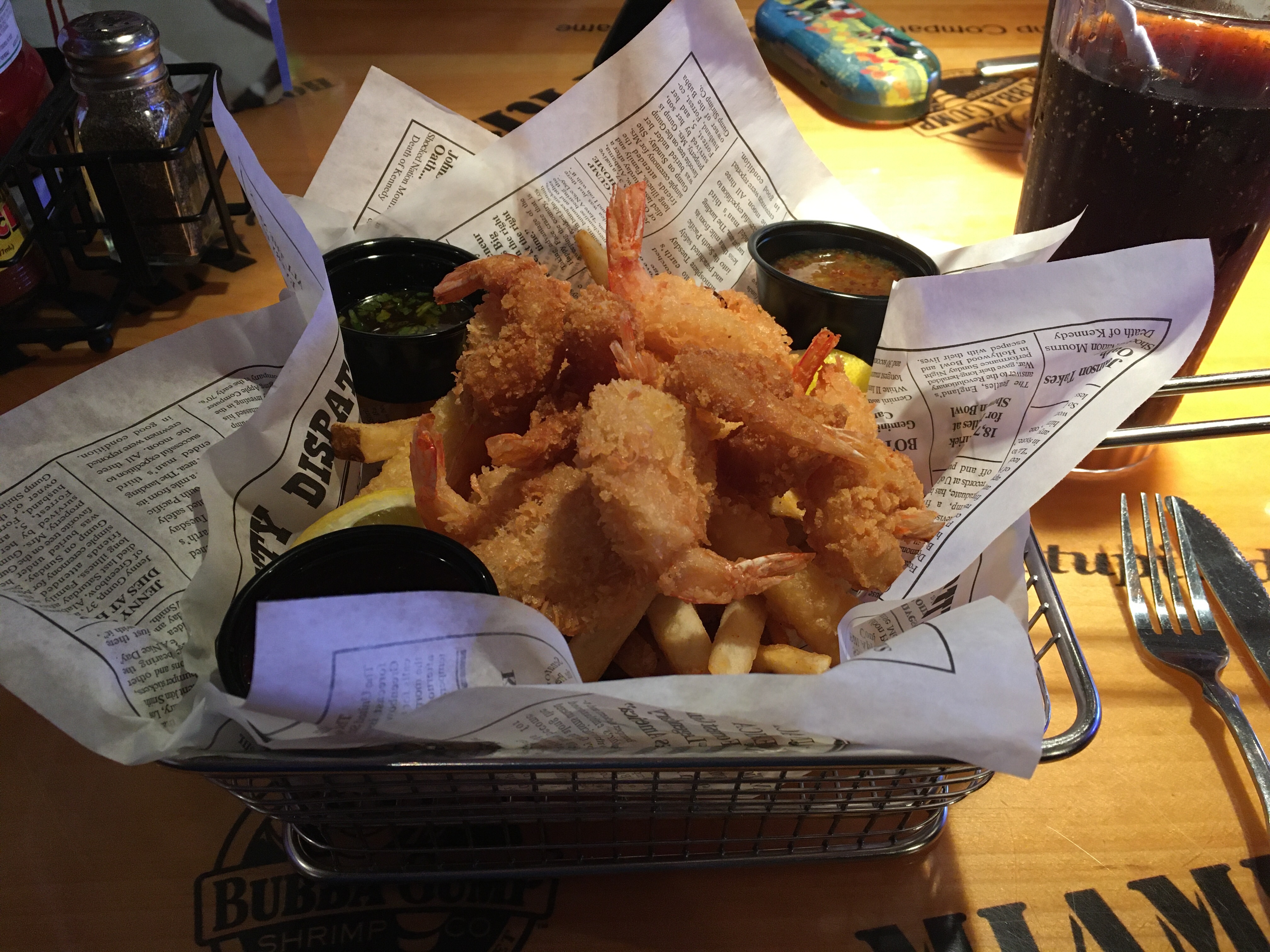 Voor het avondeten gingen we langs bij Forrest in Bubba Gump. Uiteraard stond er vis op het menu.
