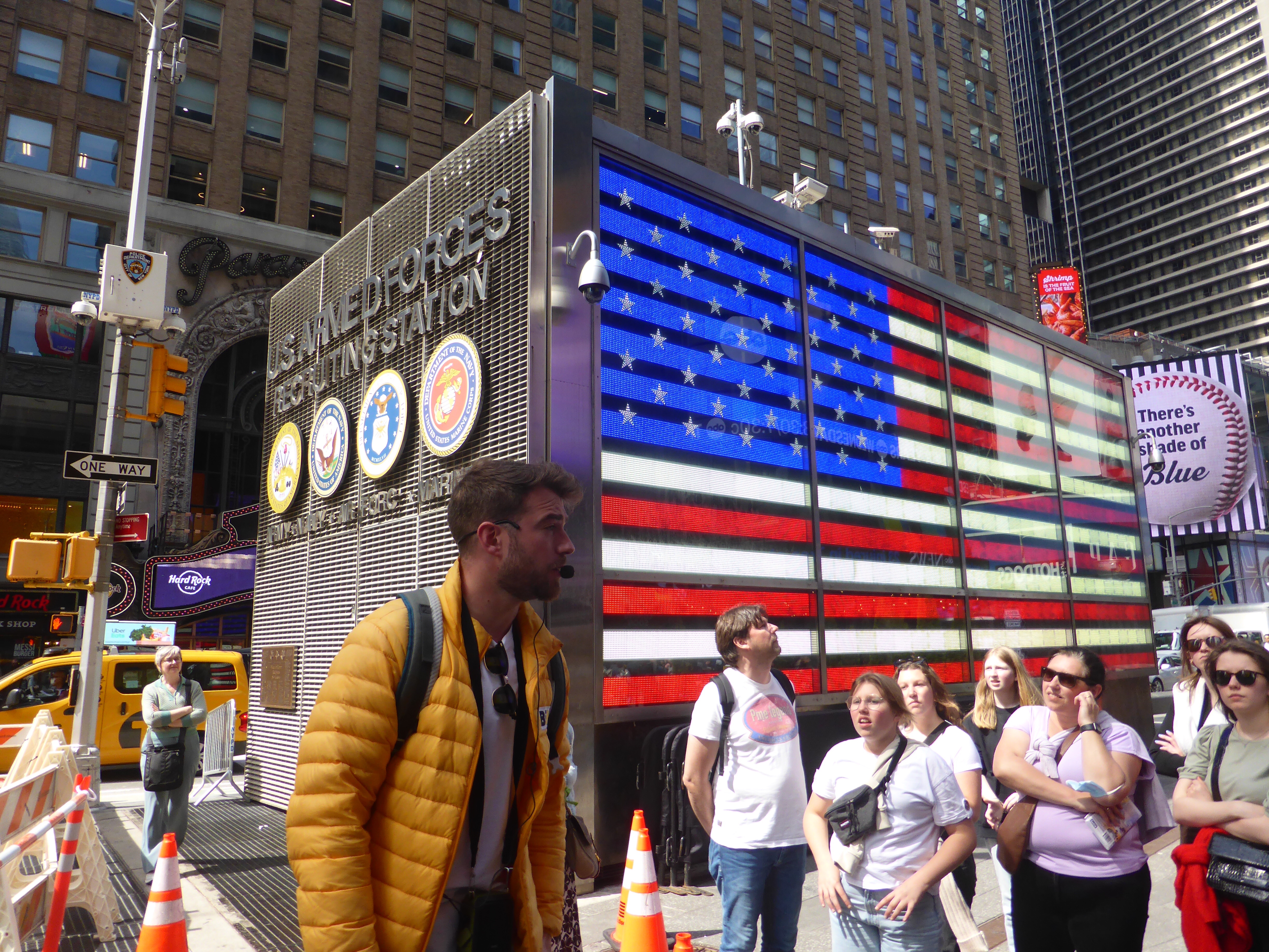 Om 14 uur plaatselijke tijd stond de gidsbeurt van BENY op het programma. We kregen ook meteen een primeur (maar die kregen we eigenlijk al de avond voordien in het BXL café), want niemand minder dan “Blind gesprongen-deelnemer” Senne was onze stadsgids. Voor zij die niet meteen op de hoogte zijn: dit programma volgt personen die ontslag nemen en een nieuwe job tegemoet gaan die gekozen wordt door een team van “specialisten”. De tweede aflevering was maandag 10 april op VTM te zien en eindigde met Senne op de luchthaven die nog niet meteen zijn eindbestemming wist… Wij wisten het nu dus sneller dan de eerstvolgende aflevering. Van ons kreeg Senne trouwens een 10/10!