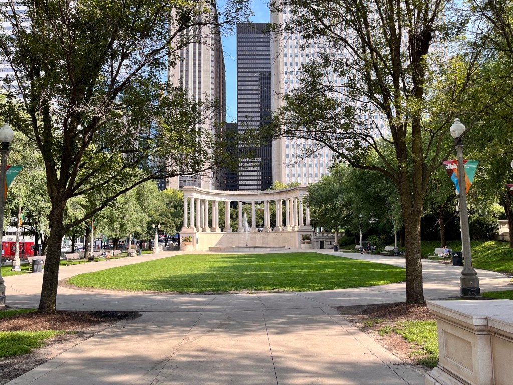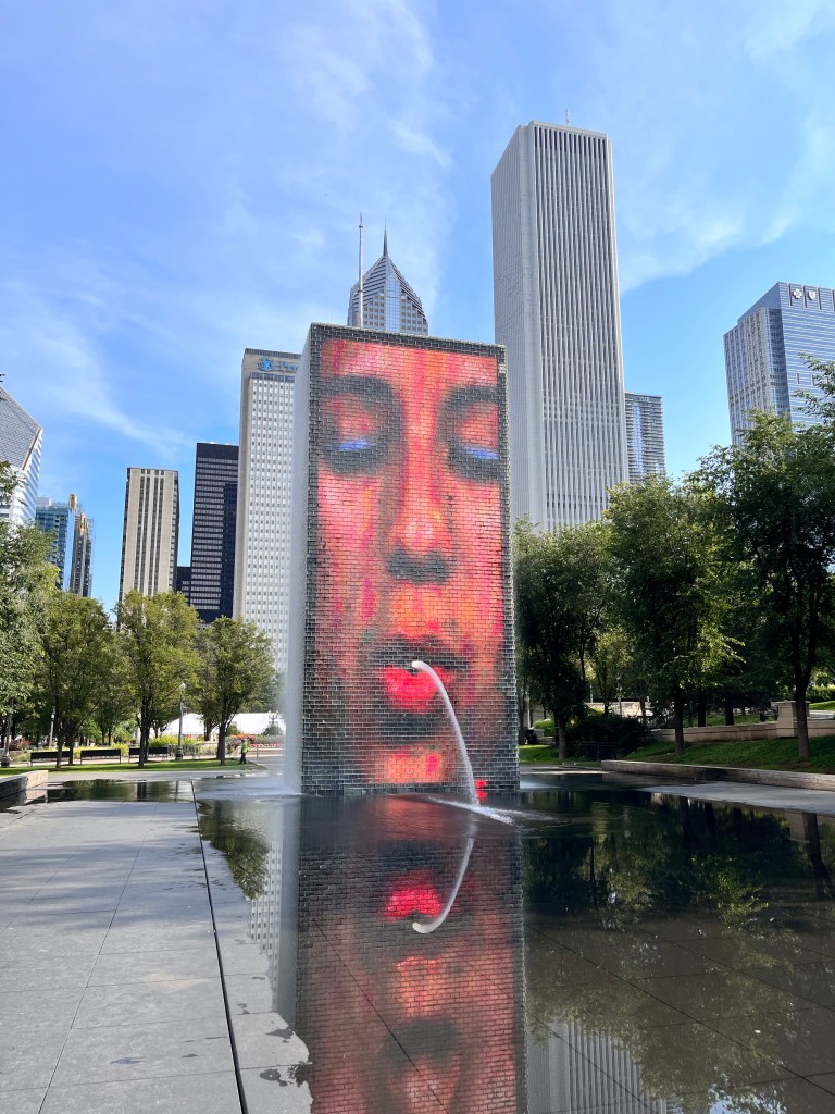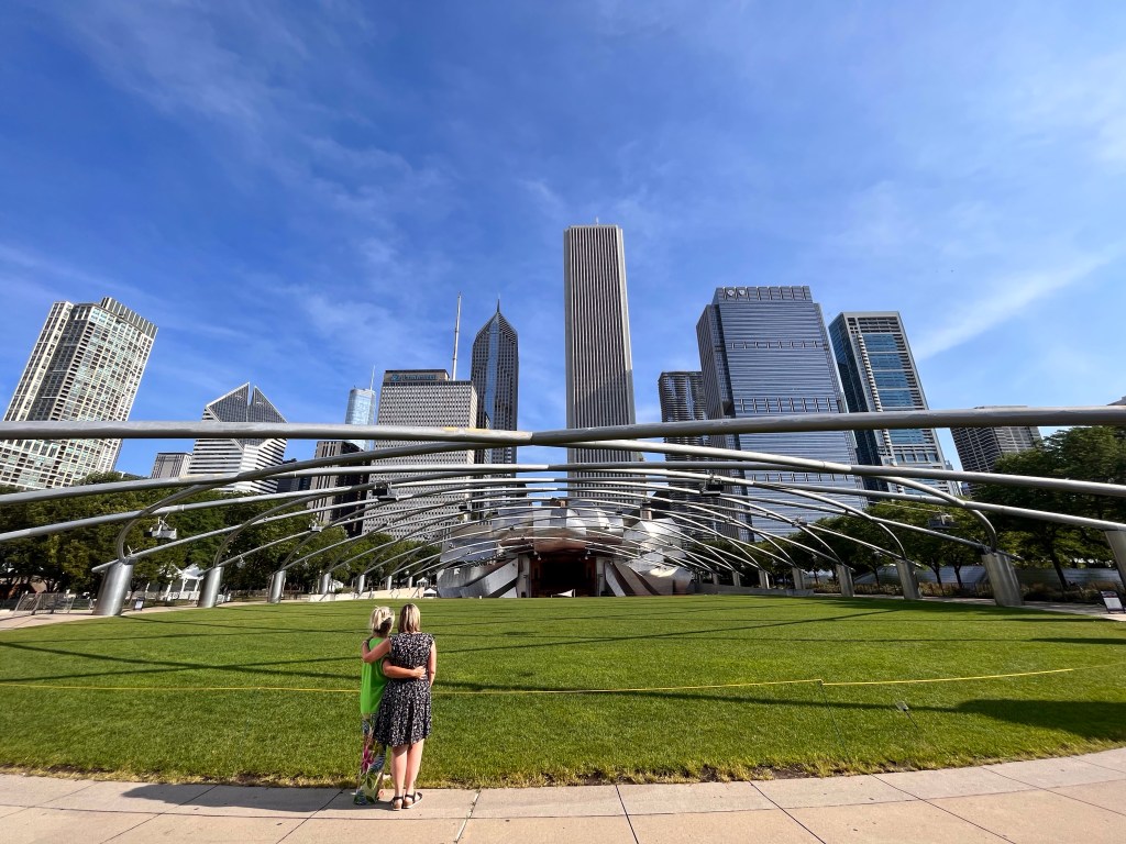 Toeristen kwamen we op dit uur amper tegen. We hadden Millennium Park dan ook bijna voor ons alleen, waardoor we onze fotoshoot van gisteren maar even hebben overgedaan.