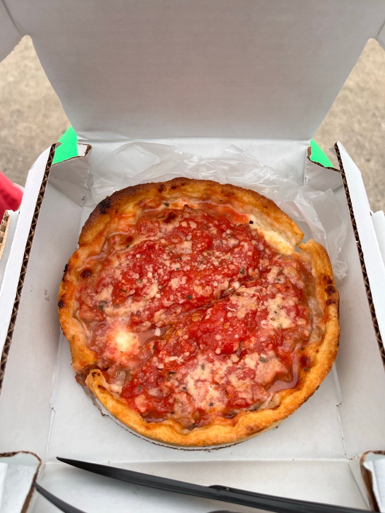We trokken vandaag richting Wicker Park, een hippe buurt met alternatieve winkeltjes, cafés en restaurantjes. We slenterden ook wat rond op de Farmers Market. Elke zondag komen boeren uit de omgeving naar deze plek om hun kazen, groenten, fruit, vlees, brood, … te verkopen aan de lokale bevolking. Hier is absoluut geen toerist te bespeuren. Wel te bespeuren: een jonge vrouw met een t-shirt van Dolly Parton… Ik kwam Dolly al enkele keren tegen tijdens de reis, maar jammer genoeg nooit de live versie ;-). Ah ja, ook nog geproefd: de Deep Dish Pizza van Lou Malnati’s; het gerecht van Chicago!
