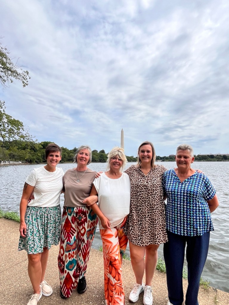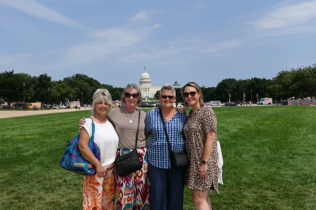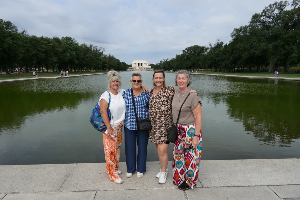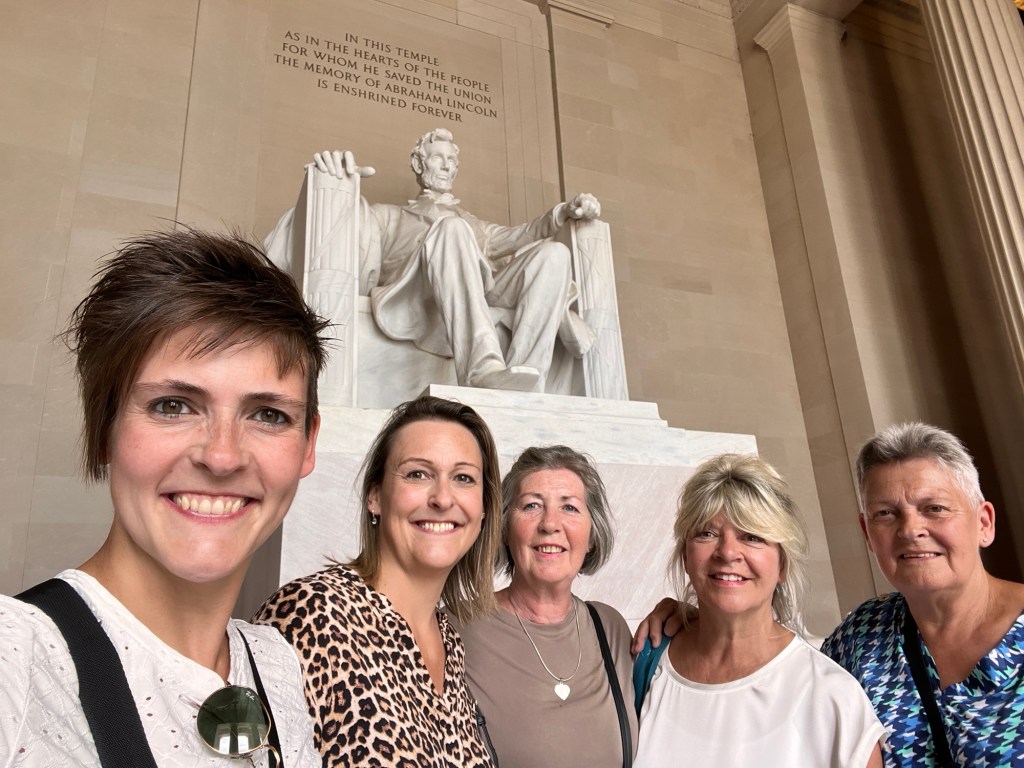 We hadden ongeveer 6 uur voorzien om de belangrijkste bezienswaardigheden te bekijken. Wanda, Vanessa en ik brachten in 2015 immers al een week door in DC. We vertrokken aan het Witte Huis en wandelden zo langs de reflecting pool richting het Lincoln Memorial. Daar waren jammer genoeg constructiewerken aan de gang voor het 250 jarig bestaan van de USA in 2026. Er werd mooi geposeerd voor de camera en voor sommigen werd het letterlijk een handje vol lachen, gieren en brullen. Via het Korean War Veterans Memorial kwamen we terecht bij de stallen van de US Park Police, waarbij ook een Belgisch paard tussen pronkte.