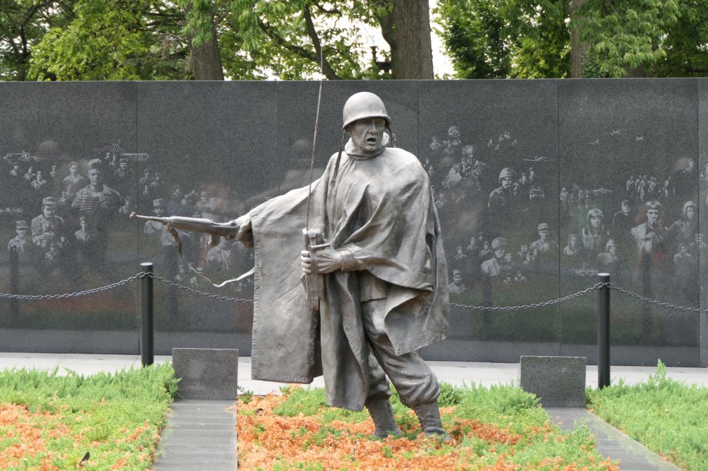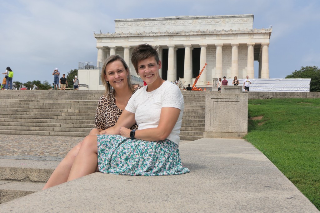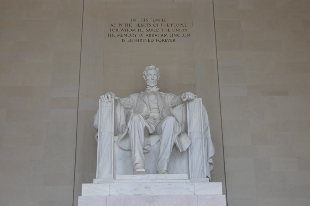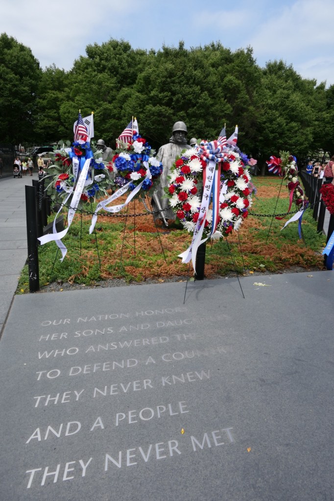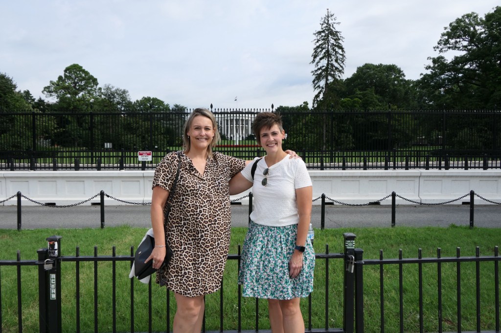 We hadden ongeveer 6 uur voorzien om de belangrijkste bezienswaardigheden te bekijken. Wanda, Vanessa en ik brachten in 2015 immers al een week door in DC. We vertrokken aan het Witte Huis en wandelden zo langs de reflecting pool richting het Lincoln Memorial. Daar waren jammer genoeg constructiewerken aan de gang voor het 250 jarig bestaan van de USA in 2026. Er werd mooi geposeerd voor de camera en voor sommigen werd het letterlijk een handje vol lachen, gieren en brullen. Via het Korean War Veterans Memorial kwamen we terecht bij de stallen van de US Park Police, waarbij ook een Belgisch paard tussen pronkte.
