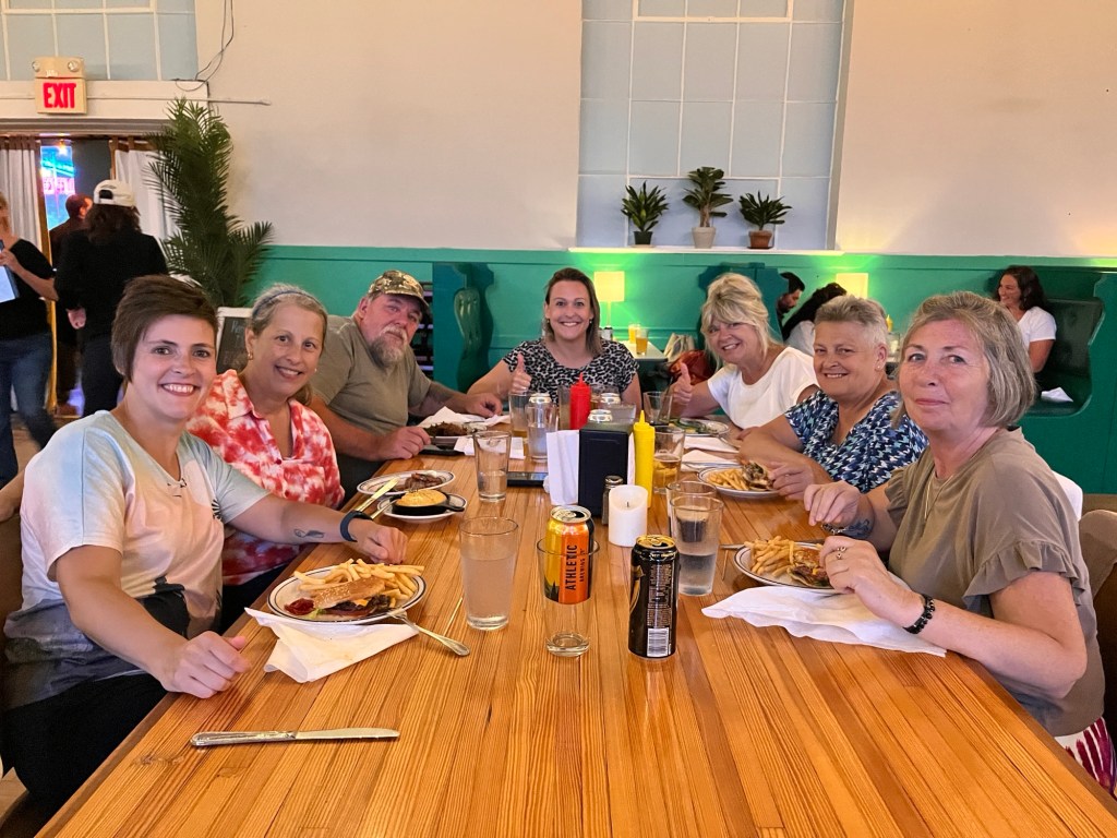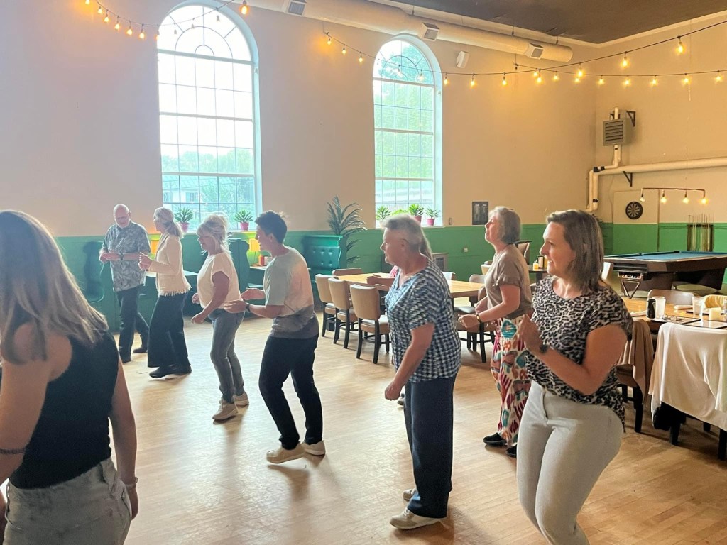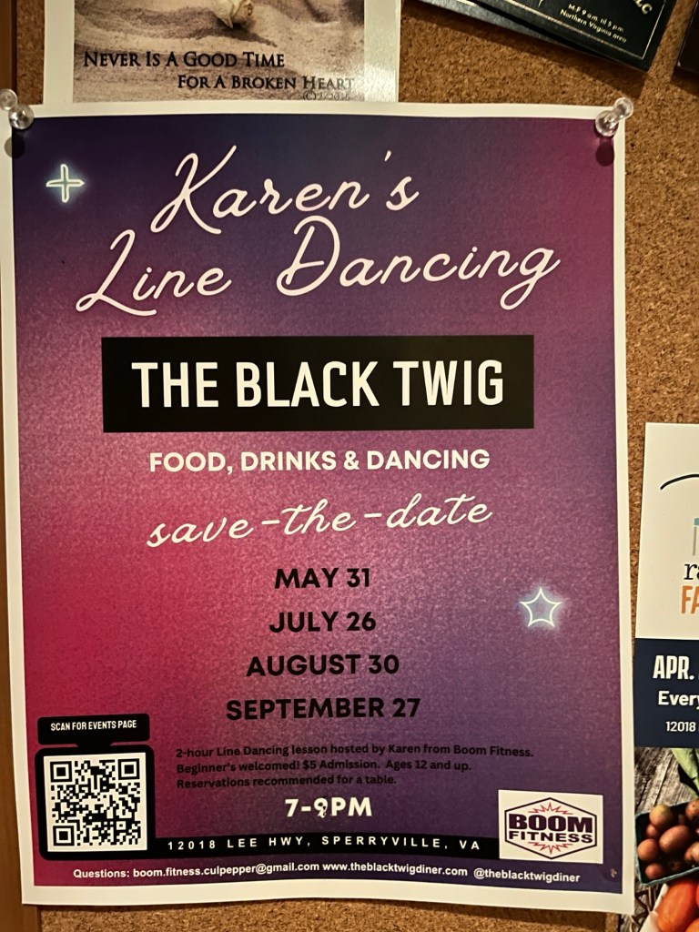 Het verkeer zat echter niet mee tijdens onze uittocht van de stad. Wat normaal een rit van anderhalfuur zou moeten zijn, werd er uiteindelijk één van twee uur. Na aankomst in het hotel in Culpeper, fristen we ons snel op en reden we richting Sperryville waar we hadden afgesproken met onze Amerikaanse vrienden Maria & Woody (het koppel dat we in 2017 leerden kennen tijdens de cruise met Royal Caribbean). Het was een superfijn weerzien in een typisch Amerikaans plattelands restaurant: The Black Twig. Geen toeristen hier, enkel locals. Naast het goede eten én het fijne gezelschap was er ook een initiatie line dancing. “Heel toe dosey doe, come on baby let’s go boot scootin’.”