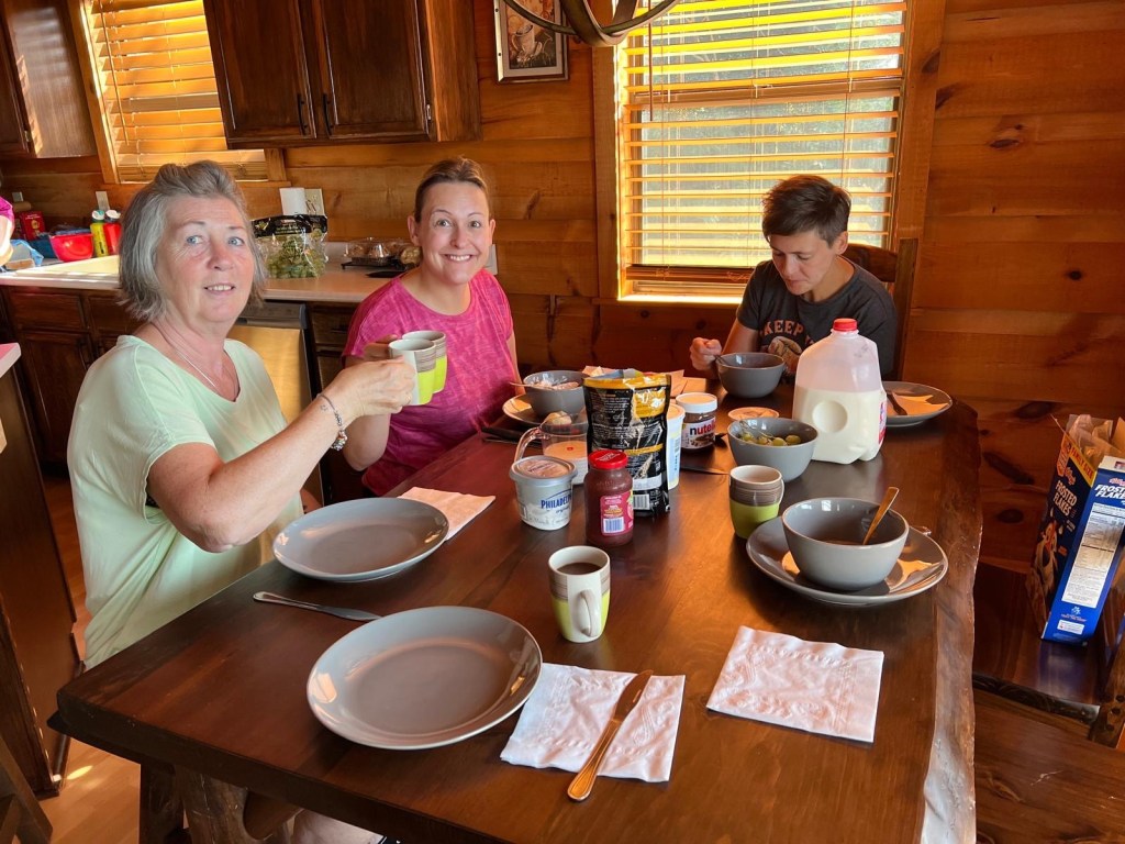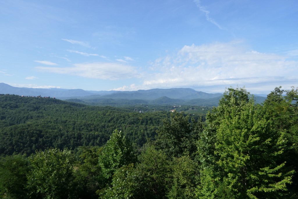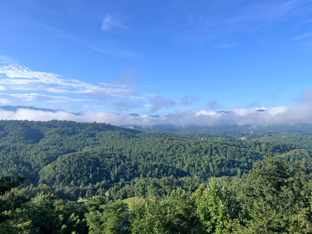 Vandaag ging de wekker niet af en dat deed deugd na onze 911 nacht van gisteren. De Smoky Mountains ontwaakten samen met ons onder een dunne laag mist en zo doet het park zijn naam alle eer aan. We ontbeten in onze cabin aan een rijkelijk gevulde tafel: cornflakes, yogurt, fruit, toast, granola, melk en koffie. We genoten ook nog van het vrolijke gefluit van de vogeltjes aan onze cabin en belden even met het thuisfront om ze gerust te stellen over onze nachtelijke avonturen.