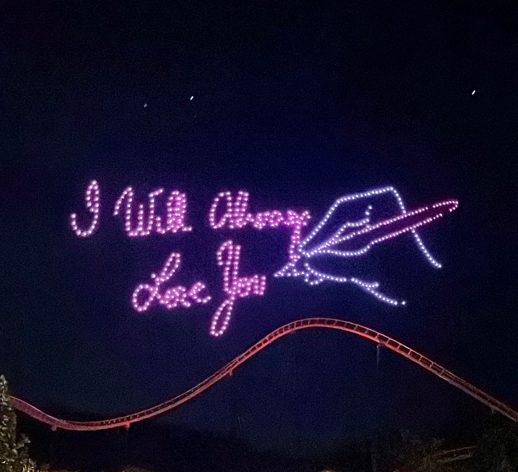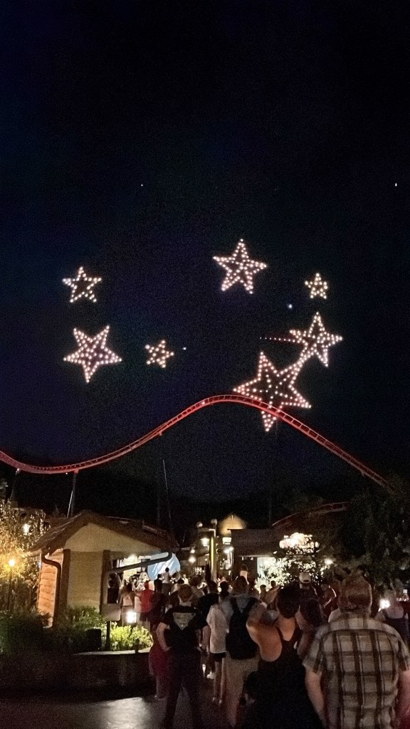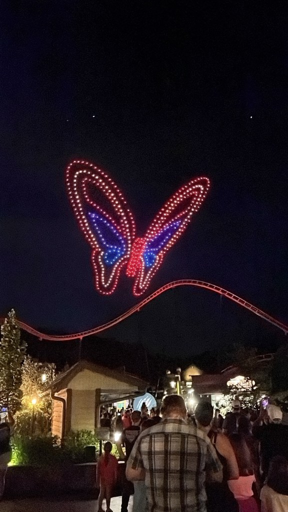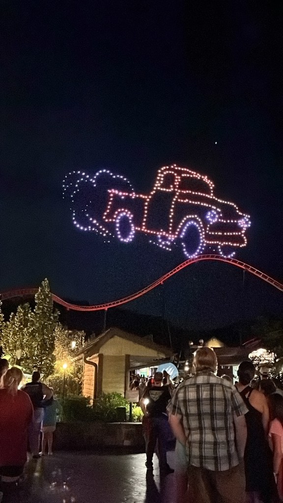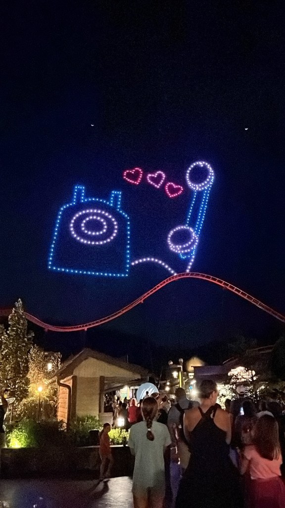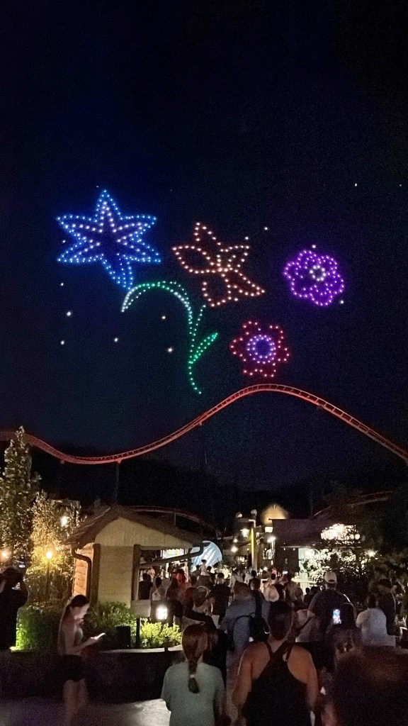 In Dollywood was het tijd om eens een aantal attracties te doen en onze hartslag een beetje de hoogte in te jagen. We begonnen met een opwarmertje: de stoomtrein van Dolly. Nadien schakelde Vanessa en ik over naar een iets hogere versnelling in de Blazing Fury om nadien zowel voor als achteruit een brandje te blussen in de Firechaser Express. Na een kleine hongerstop in Till & Harvest begaven we ons richting het achterste stuk van het park zodat we de vuurwerk- en droneshow goed konden zien. Het was echt prachtig! De drones vormden verschillende figuren in de lucht en dit op allerlei verschillende muziek, waaronder uiteraard ook “9 to 5”, ‘I will always love you” en “Light of a clearblue morning”.