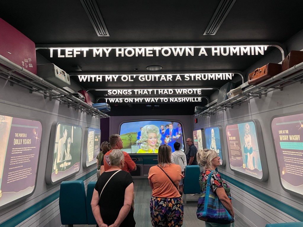 Voor we ons naar de uitgang begaven, kochten we (lees: ik) nog wat Dolly-merchandise. We bezochten ook nog een laatste keer de Dolly Parton Experience. We namen de tijd om alle ruimtes aandachtig te bekijken en vooral ik trachtte alles nog eens goed in mij op te nemen. En dan bij het buitenkomen, kwamen ze op… de tranen van emoties en ik had ze echt niet onder controle. Wat deze vrouw allemaal bereikt heeft in haar leven… Waar ze vandaan komt en wat haar bijdrage is tot de plaatselijke bewoners van Sevierville, haar fans en kinderen wereldwijd. Ze noemen haar dan ook niet voor niets de “Dolly Lama”. In haar liedjes kan je altijd wel terecht voor goed advies! Ik kan nog altijd niet geloven dat ik hier geweest ben! En ik blijf dromen dat ik ze misschien toch nog ooit eens live kan bewonderen!