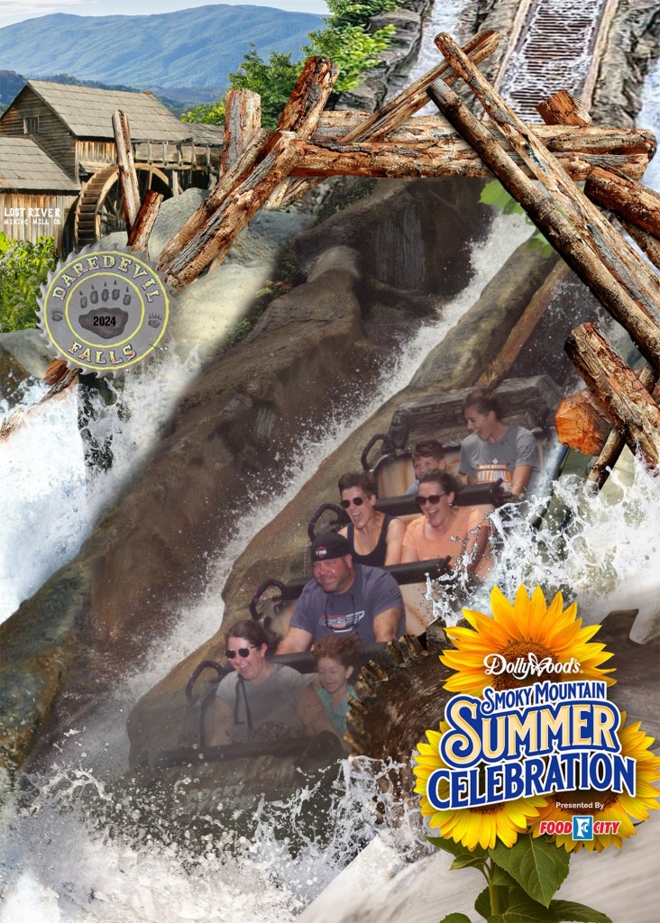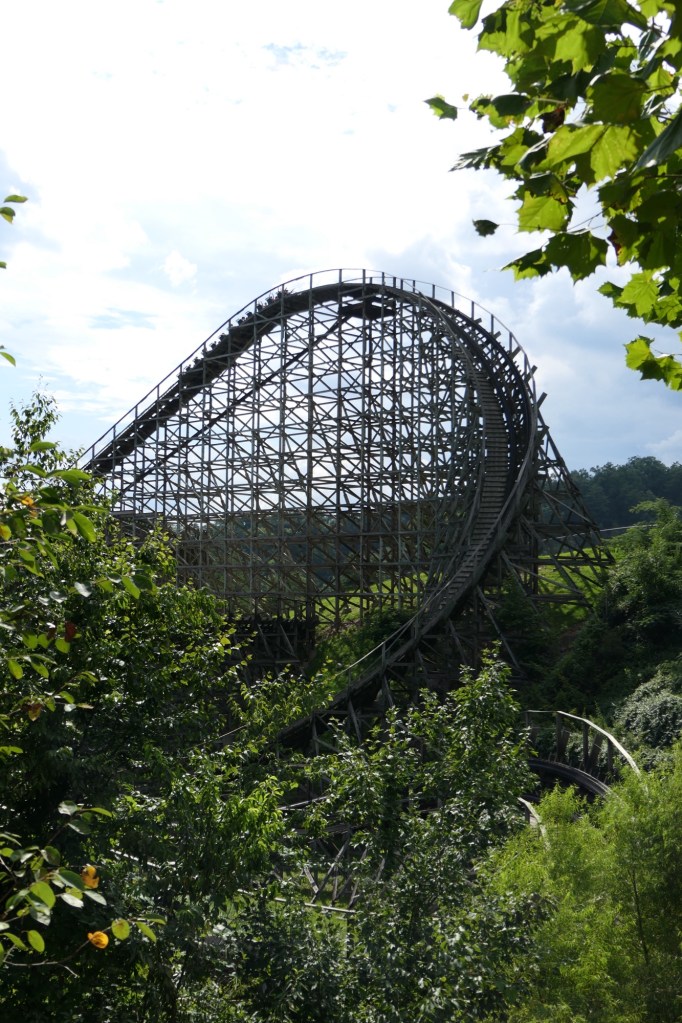 Nadien gingen we voor de derde en laatste keer naar Dollywood. We deden in totaal vier attracties. Voor verkoeling ging ik samen met Vanessa in een boomstammetje zitten van Daredevil falls. Een kort rondje met één grote splash op het einde! Maar de verfrissing was welgekomen. Met natte broek en shirt kropen we nadien in een karretje van de Mystery Mine. Volledig opdrogen deden we in Thunderhead, want deze houten coaster haalde een snelheid van 85 km/uur. Voor Viviane ging het niet snel genoeg en ze zakte dan ook liever onderuit in het karretje terwijl Wanda last had van wapperende manen… Afsluiten deden we met de Big Bear Mountain, één van de nieuwste coasters waar je 3 keer wordt afgeschoten. Overkop gaat deze niet, maar hij was wel super leuk om te doen.
