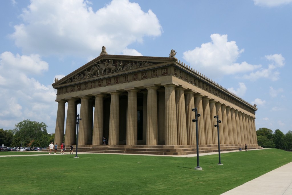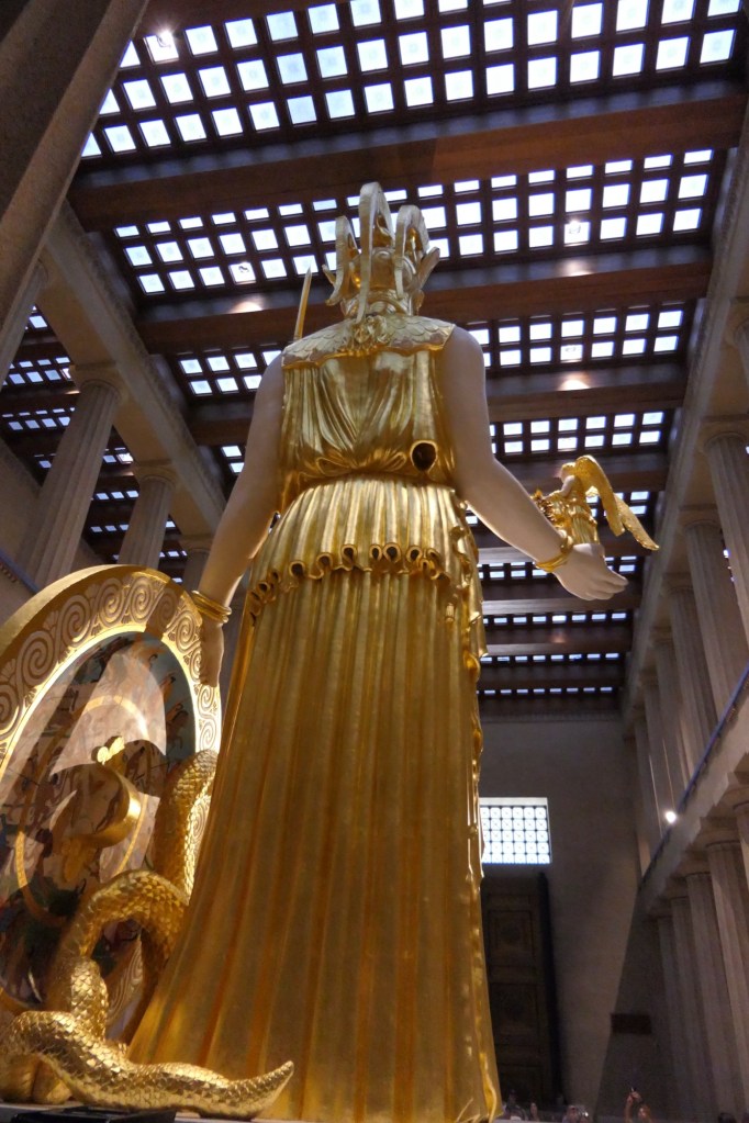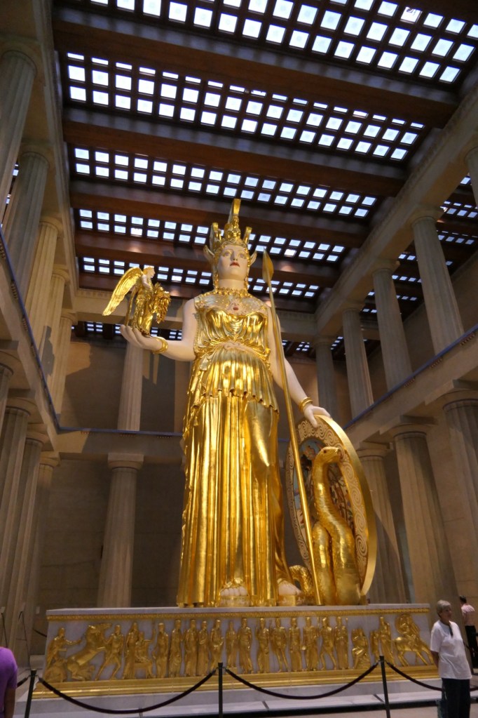 Aangekomen in Nashville stopten we eerst aan het Parthenon. Dit is een exacte kopie van de originele tempel op de Akropolis van Athene. Geen Percy Jackson of Medusa binnen te vinden, maar wel een beeld van de Griekse godin Athena. Nu heb ik eindelijk een duidelijk beeld van hoe de tempel er vroeger van binnen moet uitgezien hebben. De foto’s zijn alvast iets dat ik kan meenemen voor de eindejaarsreis naar Griekenland van 2025.