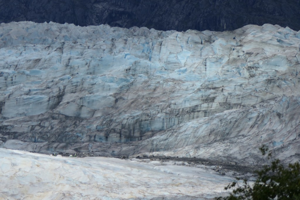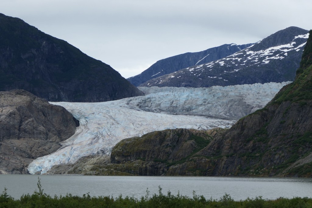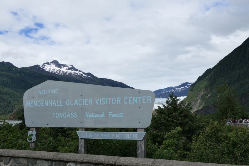 Het eerste deel van onze excursie bracht ons naar de “Mendenhall Glacier”. Jammer genoeg hadden we hier maar 45 minuten tijd, waardoor we niet naar “Nugget falls” konden wandelen. Ik had nog nooit een gletsjer in het echt gezien en het is echt wel impressionant. Alleen jammer om te vernemen dat de gletsjer op 90 jaar tijd serieus heeft moeten inboeten… In 1935 kon je de gletsjer nog aanraken vanuit het Visitor Center. Nu ligt hij al op 2,82 km verwijderd van het gebouw en de voorspelling is dat hij in 2050 niet meer zichtbaar zou zijn vanaf het visitor center door de klimaatverandering.