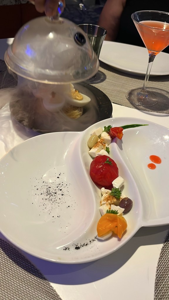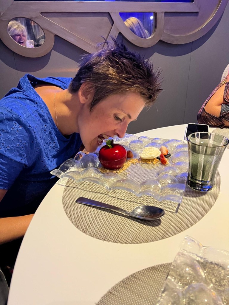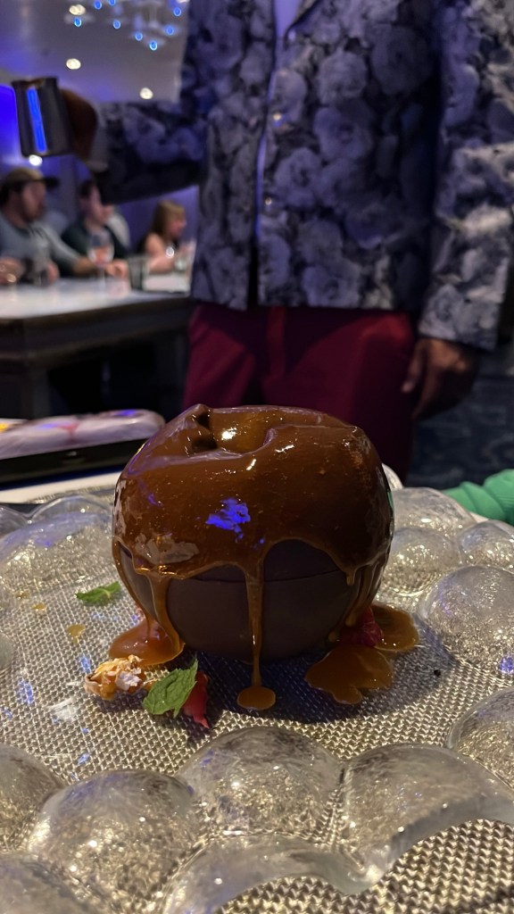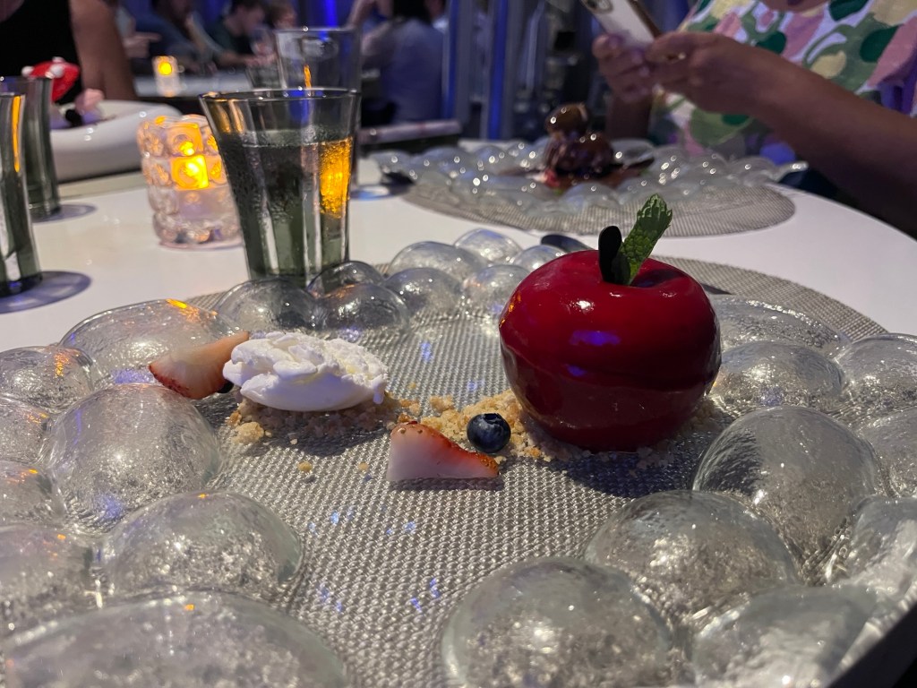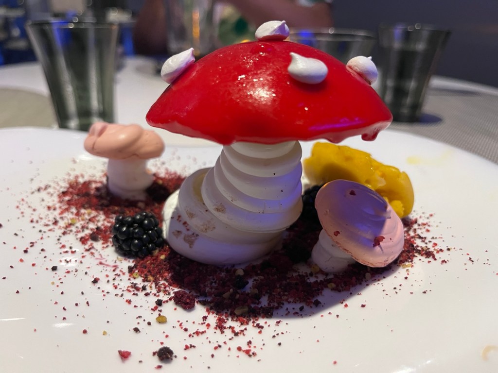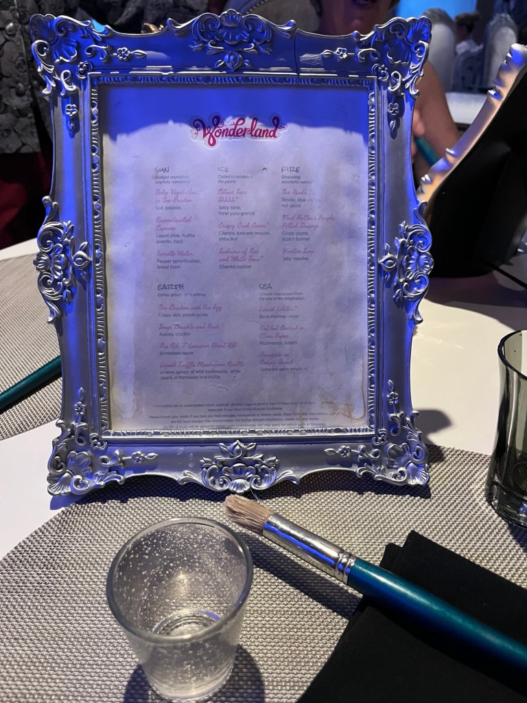 Deze keer geen avondeten in de MDR, maar wel in “Wonderland”. Dit is een restaurant dat niet in de prijs is inbegrepen en waarvoor je dus moet bijbetalen. Het thema is geïnspireerd op de film “Alice in Wonderland” en het biedt een ganse ervaring aan op gebied van eten, presentatie en beleving. Onze ober “Sonu” gaf ons nog 25 % extra korting en voor de cocktail die we bestelden, moesten we ook niet betalen. Dit was op kosten van Royal Caribbean.