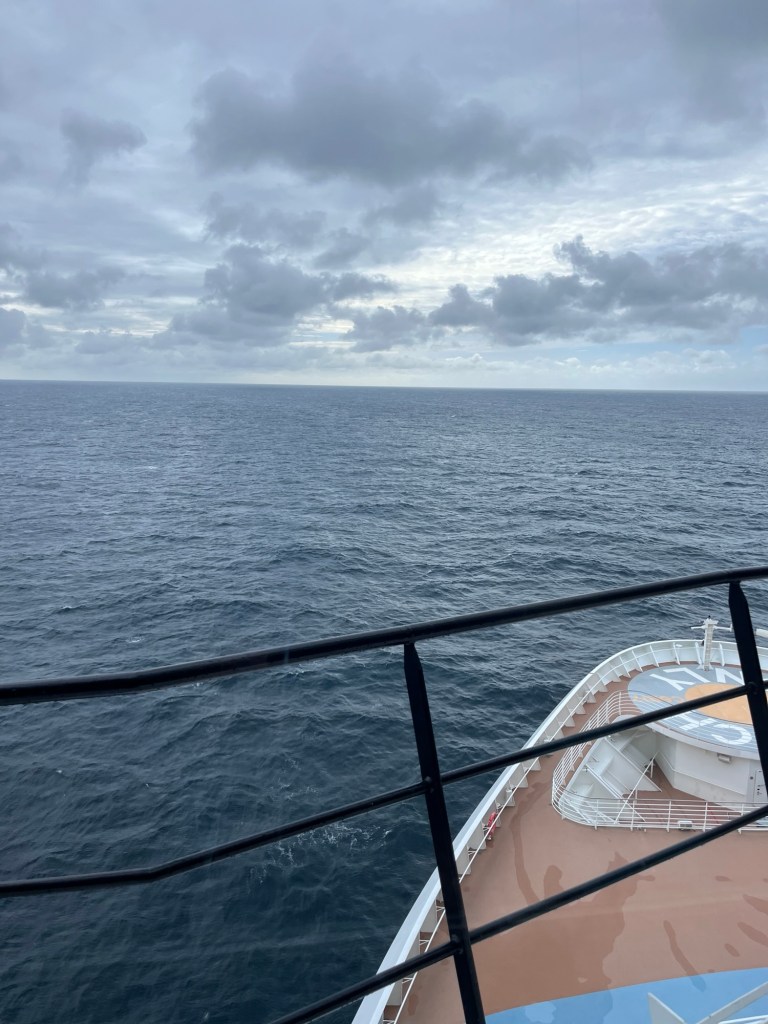 Toen de musical voorbij was, begaven we ons naar dek 15. Het weer was zalig en we besloten dan maar een uurtje of meer te genieten op de ligstoelen. Ondertussen werd er op het grote scherm buiten een film afgespeeld.