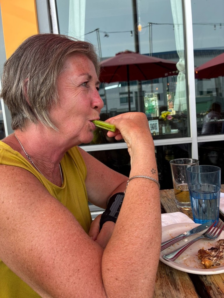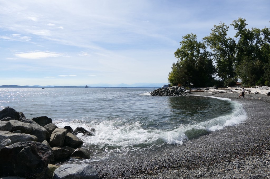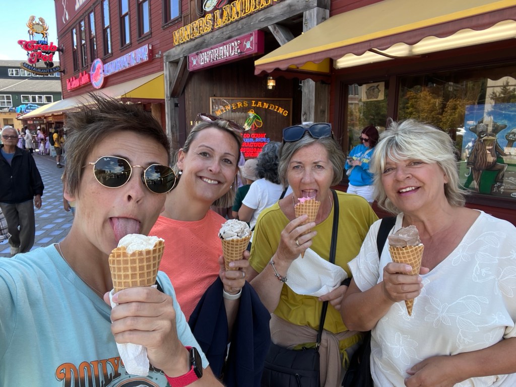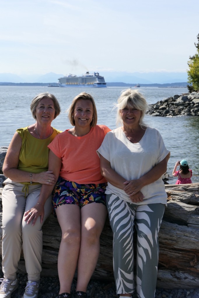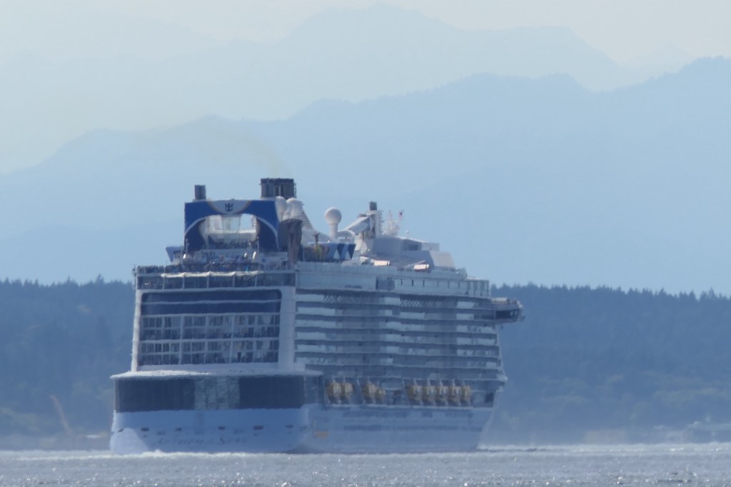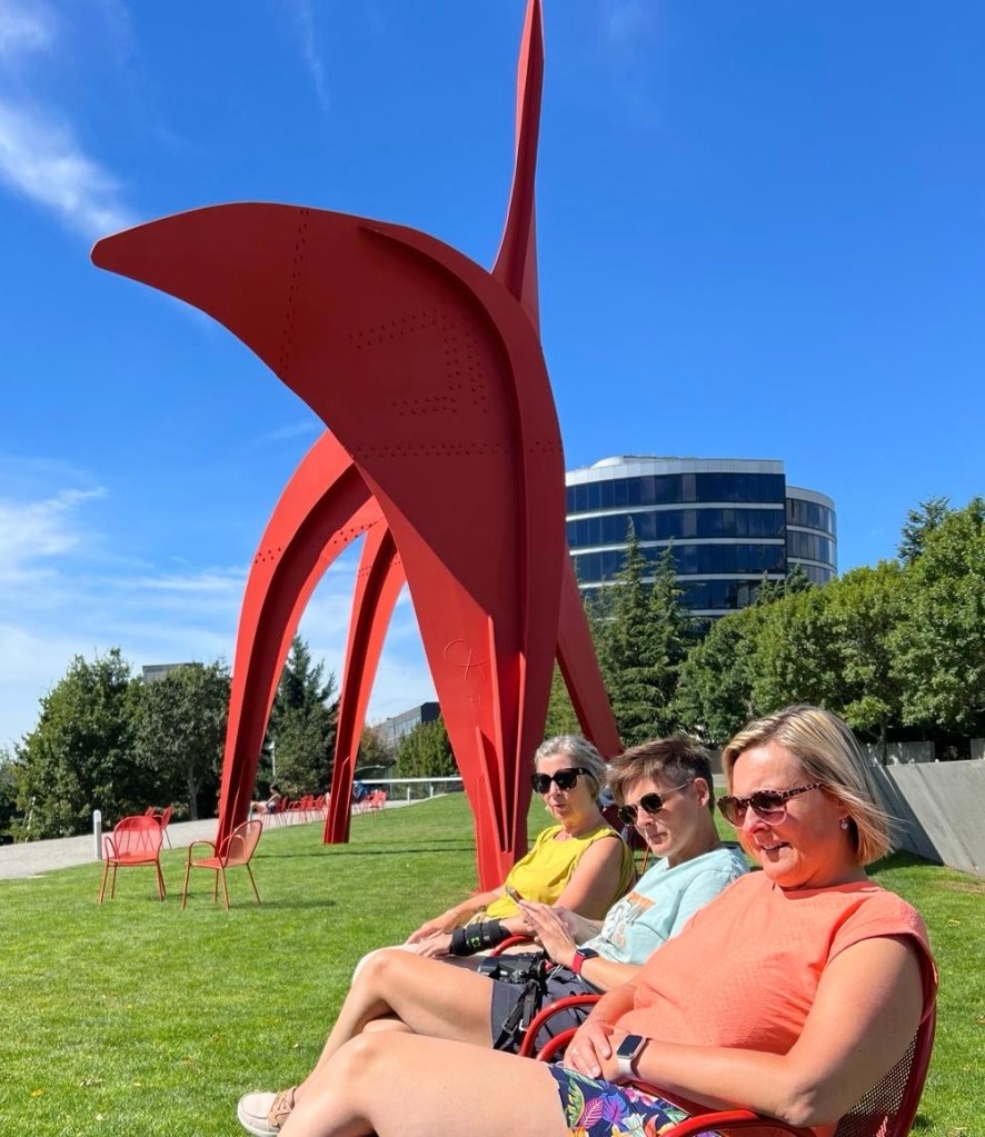 Ondertussen wandelden we terug naar de “Waterfront” richting pier 69. Omdat we echt wel een orca willen zien, doen we nog een laatste poging. We boekten nog een tour voor aanstaande dinsdag. Duimen jullie mee? We brachten ook een kort bezoekje aan het “Olympic Sculpture Park” en zagen vanop het strand de “Anthem of the Seas” opnieuw vertrekken voor haar volgende cruise. We genoten even van wat rust aan het water en ik vond eindelijk mijn rots onder de zon (reptiel dat ik ben). Voor een drankje en een hapje gingen we langs bij “Pub 70”. Het werd een gezellige late namiddag/vroege avond aan het water. Met een Uber gingen we terug naar het hotel. Een primeur voor Viviane en Wanda, want zij reden voor het eerst mee in een Tesla. Over Tesla gesproken: we kwamen vandaag weer meerdere “Cybertrucks” tegen. Wat een gedrochten zijn dat! Afschuwelijk! Nog lelijker dan de “Fiat Multipla” en dat wil al veel zeggen…